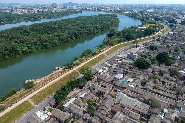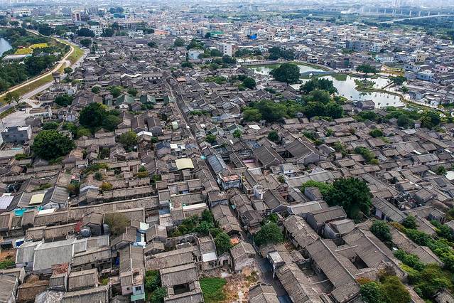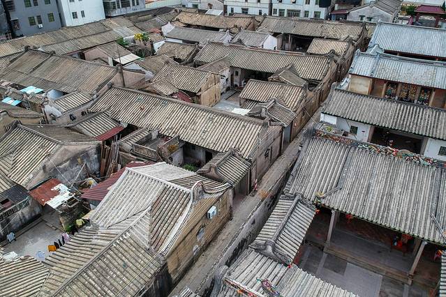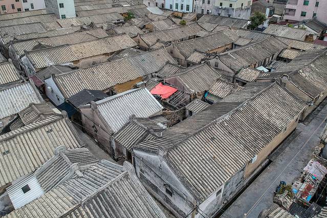 用无人机的视角看龙湖古寨,依韩江而建的古建筑群错落有致,完全就是一个建筑的博物馆,形似“龙脊”的寨中央直街贯穿其中,加上该寨四周韩江水、池塘湖水环绕,因而得名“龙湖”,在整个古寨内,直街东面有三条街,西门有六条巷,形成了“三街六巷”的工整格局。
