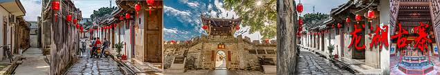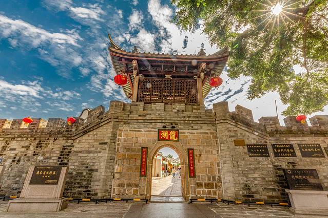 穿过一道石门,透过门坎上的尘土,沿着古寨的街巷满满前行,设计有致、布置明朗的一座小城开始出现在眼前,其地形及建筑风格与古时 潮州 府很相似,故龙湖有 潮州 小城之称。