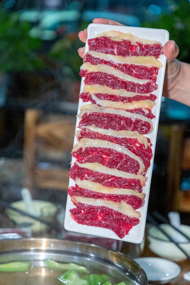 官塘的牛肉店很多,而我则选择了朋友推荐的官塘四季牛肉火锅。老板是个性情中人,毕竟用“亩”作单位的牛肉店并不多见,停车场大到可以“ 打横 来”,一到饭点就停满大大小小的豪车,好一派门庭若市的景象。