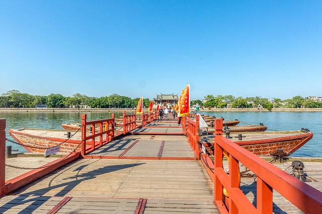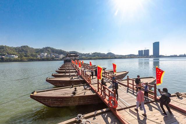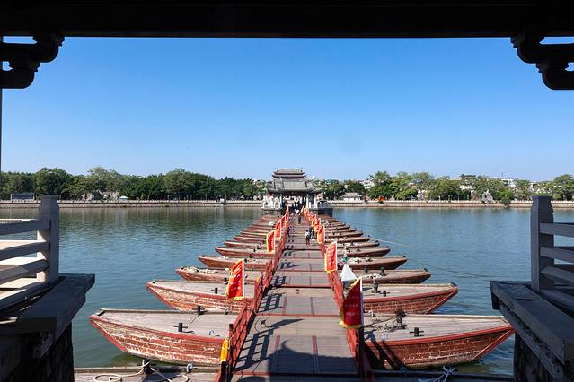 广济桥始建于宋朝,在明朝正德年间形成了“十八梭船二十四洲”的特点,历经水患、火灾、战乱、修复,直到晚清前的广济桥我们只能从史料中找寻它的样子。直到2003年,政府以修旧如旧为原则,重修广济桥,2007年正式对外开放,一座848年的古桥,终于被还原成明朝时的样子。
