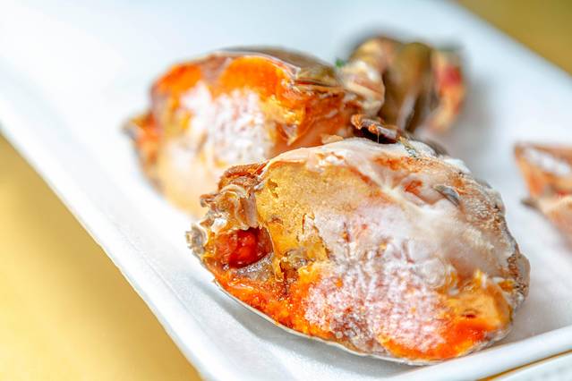 不过说到我的最爱,一定要数顶膏的咸膏蟹!这只柔滑得像雪糕一样的顶膏蟹,真的尖货之中的尖货,用酱油生腌的它不仅膏脂横溢,口感更是咸鲜柔润,舌尖所触之处,令人感到惊喜无限,满满的幸福感终究藏不住,那就和大家一同分享吧!