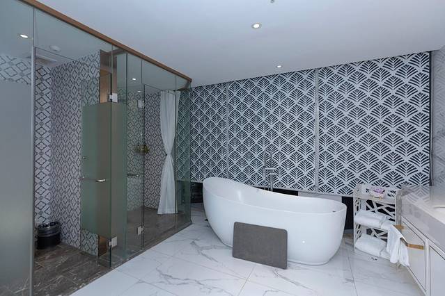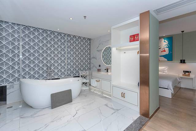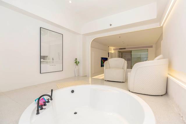 房间也是简约的白色元素,一袭高级感扑面而来,双人按摩浴缸令人感受到无尽浪漫,还贴心的配有牛奶泡泡浴和玫瑰花瓣,氛围感立马升LEVEL。床褥软硬适中,纯棉的床品令人酣睡到天明!
