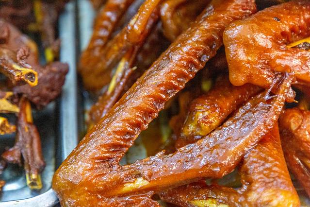 潮州 的鹅肉是精致的,因为它会细化到鹅身上的每个部位。我喜欢吃鹅肝和鹅翅,即使鹅肉鲜甜,鹅肠爽滑,鹅胗韧实,鹅头矜贵;而它家的鹅肝,却是甜而不腻,柔滑惹味;而对于它家的鹅翅,我则是又爱又恨,它不仅与杯中物是绝配,更适合外卖!即使回到 广州 ,只需一个电话,就能在第二天早上收到来自 潮州 的真味~过夜的鹅翅更是鲜甜可口,细细地咀嚼,鹅翅真的很香很诱人,配上独门秘制的酸头醋,劲头十足!难怪霆锋来 潮州 ,吃过还要打包走!