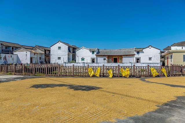 村里居住的人家不算太多,大多搬迁到了附近的镇上或者去往城市,遇到一些空旷的场地会有村民在这里晒稻谷,阳光下金灿灿的样子给了村庄更多的生机和生活的氛围。