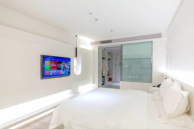 通体白色独栋的简居HOTEL设计感非常强,INS风满满,从门口的漫画开始,到kawa公仔满布酒店,YOUNG元素飞扬。前台小GG和贴心,会告诉客人有自助洗衣房、有自助咖啡☕️,个性又时尚。