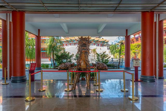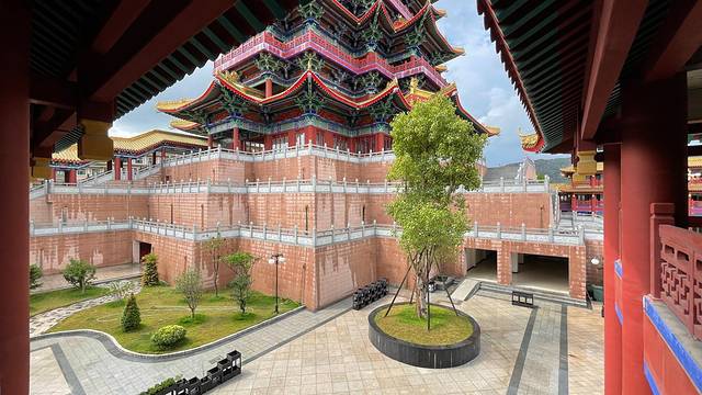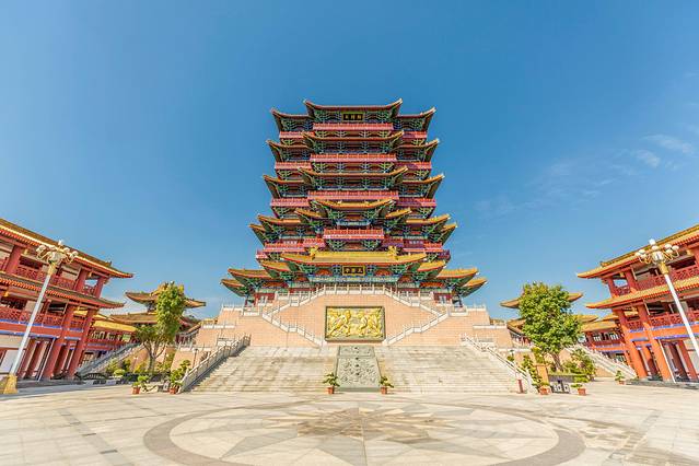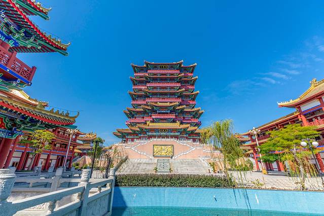 中华麒麟阁坐落于太安堂麒麟丸非遗博物院南面,座北朝南,总高70.13米。