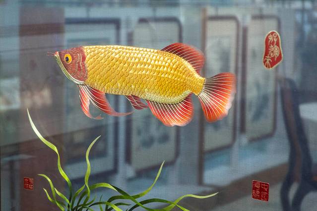 走进郭老师的工作室,一下子就被这一条金鱼吸引住了,金鱼在鱼缸里游走的动作以为是真的金鱼,走进才发现原来是刺绣作品。