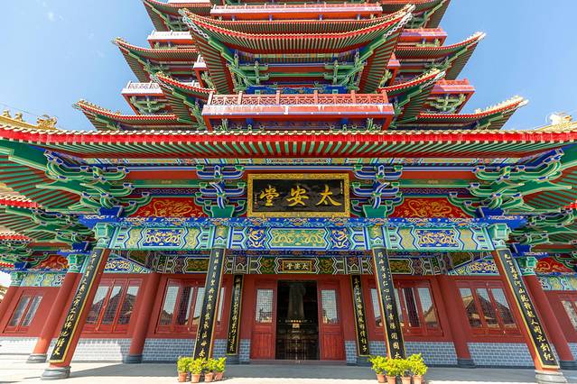 在高速路旁一栋大型建筑引起许多人的注意,这就是太安堂麒麟阁,也叫中华麒麟阁。