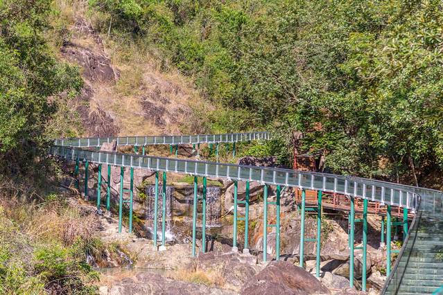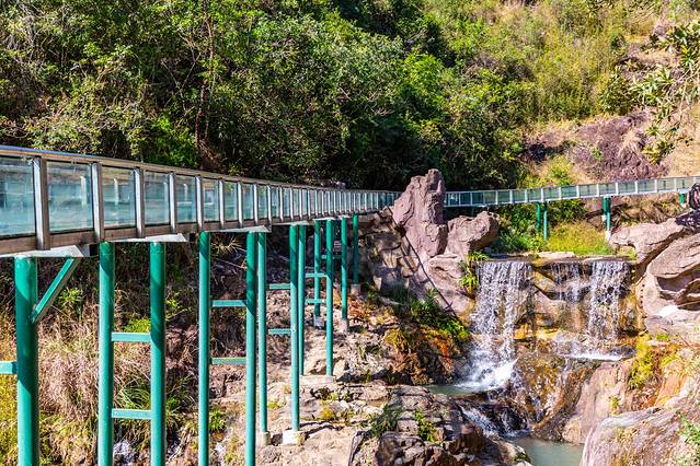 沿着栈道一直走,溪流和飞瀑渐渐地多了起来,峡谷里清澈的水和清新的空气让人心旷神怡。虽是冬季,这里还是满眼的绿色,这让来自严寒的北方朋友羡慕不已,一直都在说个不停好羡慕这里的天气。