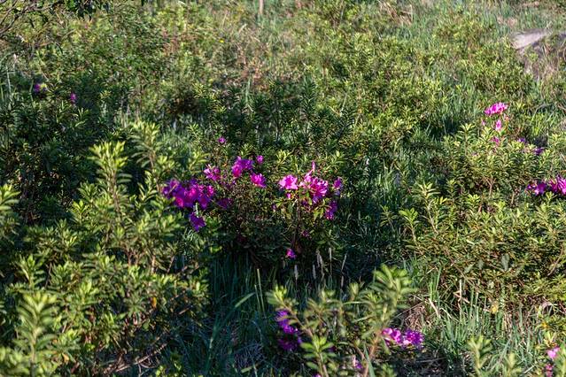 天池的一侧是一块宽阔的高山草甸,逐渐成了许多户外爱好者的打卡地,休闲露营都是非常好的选择,站在这里可以远眺周边的巍峨群山和一望无际的山河美景,碰到好天气的时候还可以守候一场惊艳的日落也是非常有必要的。