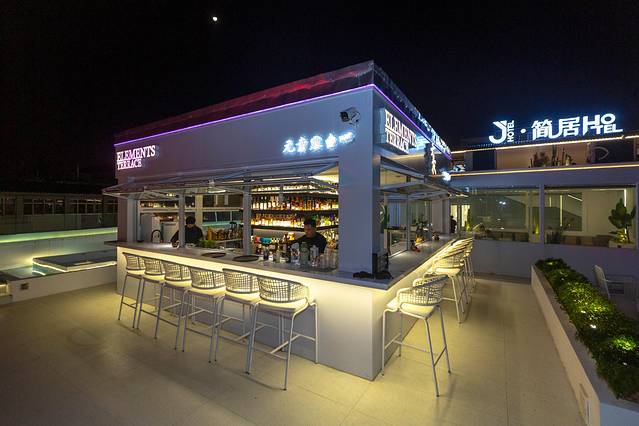 顶楼还有一个很大的露天清吧~元素露台酒吧,在这里可以感受 潮州 城独一无二的夜景,晚上不妨小酌几杯,放松心情,饮品券还是随入住时赠送的哟。享受 潮州 ,从简居HOTEL开始!