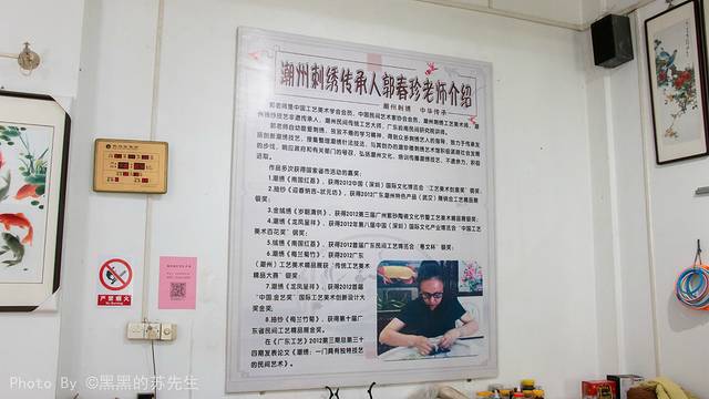 有位潮州的朋友给我说过,潮绣是很多人来到潮州都会亲眼看,亲手体验一次的行程。起初我对这句话还抱有将信将疑的态度,也是因为后面几天在潮州游玩的时候无意看到了潮绣,被那些精美的手工作品吸引到了,最后专程找到了潮州刺绣文化研学基地,因为这里有一位潮州刺绣传承人:郭春珍。