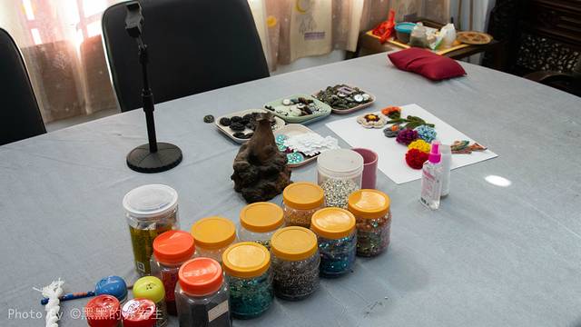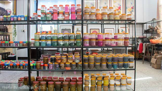 别以为那些刺绣看起来简单,其实背后有非常复杂的工艺,不但要有高超的技艺,相关的配料也非常的重要,在二楼的最里面我就看到了很多装在罐子中的一些配料。