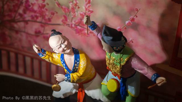 大吴泥塑至今已有700多年的历史,博物馆内的工作人员介绍到,大吴泥塑在1736年至1911年之间,生产规模、数量,都远远超过当时全国最出名的江苏无锡惠山和天津泥人张。走过长长的过道后便到了另外一个展馆,这里展示的泥塑大多都是以戏剧人物为主。