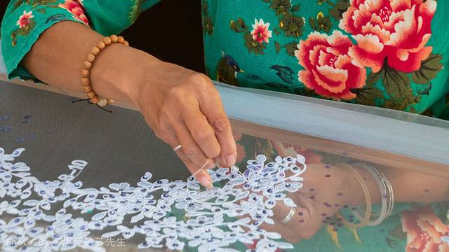 当我们来到潮州刺绣文化研学基地时,正好遇见她在工作,一根针,一根线,在外行人的眼中看似简单,但在她的手中轻盈地飞舞,上提下拉,行云流水。在我的印象里,凡是是能将一件事从头做到尾,那一定是真爱,郭春珍老师就是这样的人。