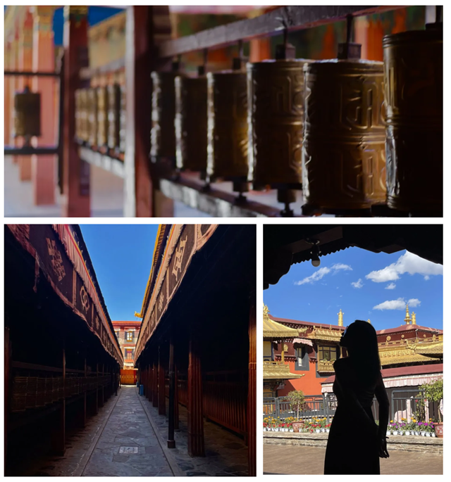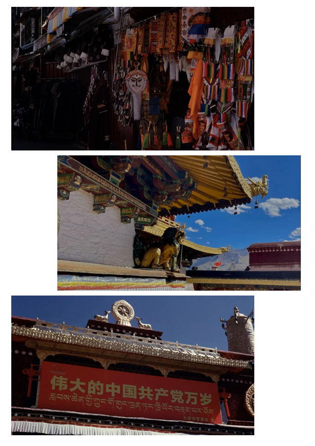 从进门就能看到朝拜的藏民特别多(我怕觉得不礼貌就没有拍摄),在他们身上你是真的能看“虔诚”;寺庙内部有部分保留吐蕃时期的建筑,虽然不能近距离观看触碰但还是被信仰的力量震慑到了;楼顶的金顶被午后阳光裹着非常刺眼,尽管这趟旅程被紫外线伤了不少次,还是忍不住坐在石阶上感受寺庙独有的静谧。