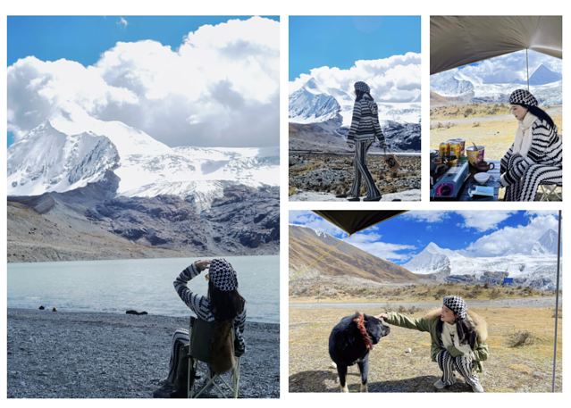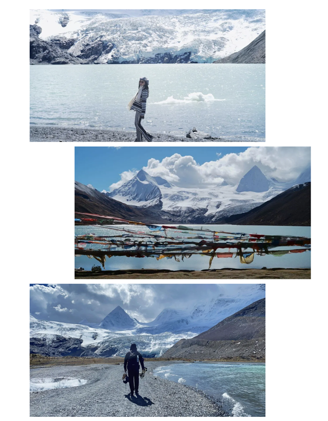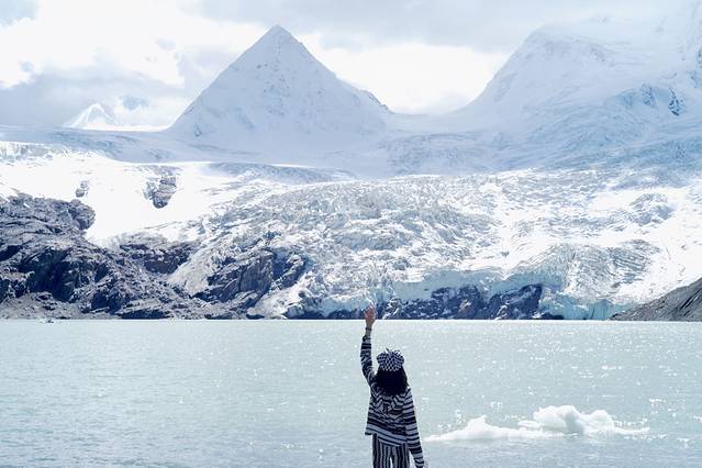 国庆的时候内湖已经融化,所以不建议在9.15号之后在冰川湖上拍照,至于服装和温度,只要没风的时候一件针织衬衫足矣(大概是因为内湖的风都被山围挡了)。