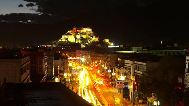 八廓街潮流文化广场楼上的餐厅很适合拍延时摄影,但还是要记得带长焦去旅游呀!这样就能集齐布宫的日与夜了。我们大概是六点开始拍的,那时候时间刚刚好(餐厅人很多,来往的时候走路压地板,导致很多延时拍出来都是虚的)。