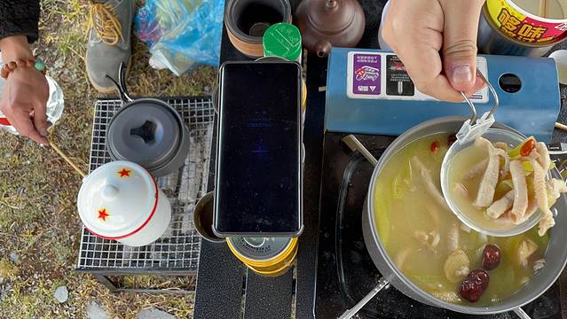 事实上,也正是野餐的这两小时大风刮加上一路都是弹坑路,当晚高反发烧了,幸好有带感冒灵出行的好习惯才得以迅速恢复;我们在当雄蔬果铺子买的这个罐头真的挺好吃,很适合下火锅,看Vlog的时候那个质感就知道,绝对比纳木措景区送的午餐美好。