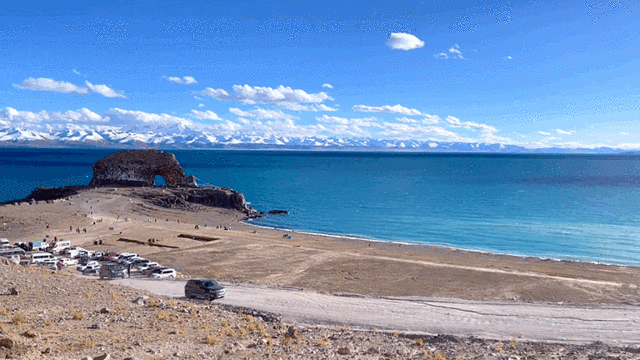 纳木错是西藏三大圣湖之一,也是藏区最大的圣湖,沿途连绵的雪山真的太治愈了;但最美的点反而是我们拍照的这个私人露营点(不在大路上,具体位置还是得问熟悉路线的向导),能清晰看到唐古拉山脉不说,这橙蓝相间的对比色可太出片啦。