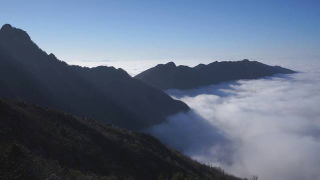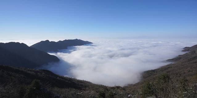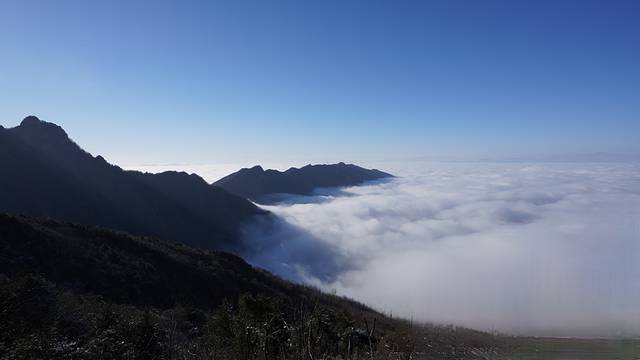 感受:汉阴阴沉沉的天,进山后就可远见山尖处有一片蓝天,待到云海观景台处已是晴空万里。第一次观赏如此厚实的云海,有点像在飞机上看到的云海,却有山体在云海中挺立,很是好看。静静地观赏云雾翻腾,很是令人心胸广阔。离开观景台开始下山,雾越来越大,能见度基本50米,这时才理解为何云海如此“厚实”。下山有一段段的维修路段,不好走,特别有一段泥泞路段,我们没再前行,返回,再次观赏了云海后,回到汉阴。