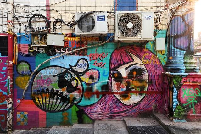 学校旁还有一条涂鸦艺术墙,