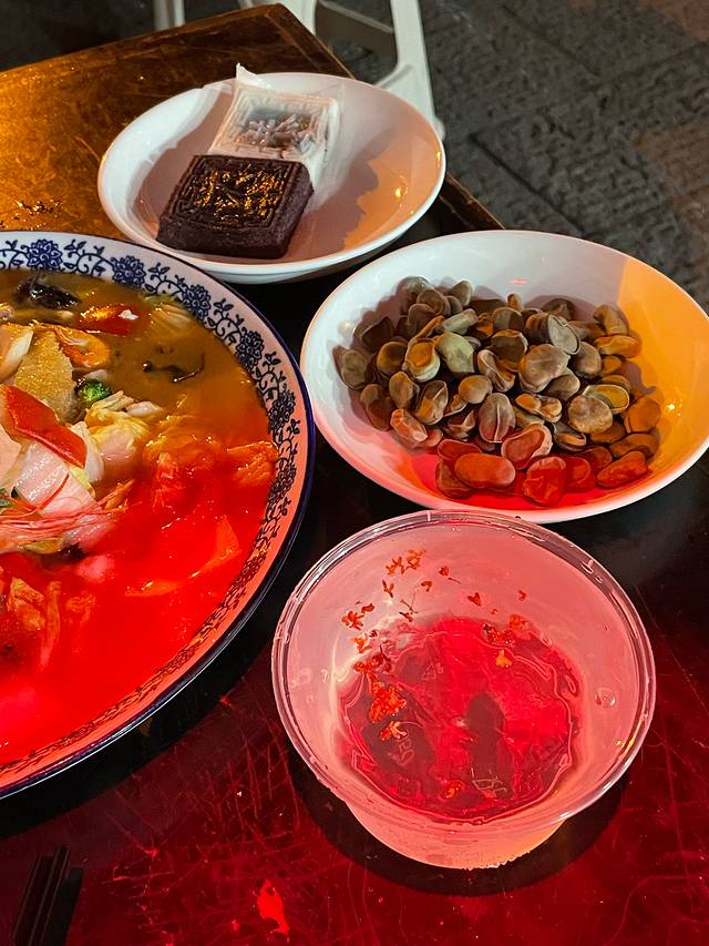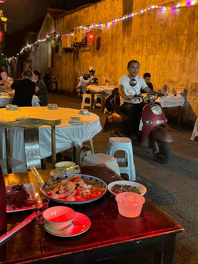 本来想去孔乙己,但是当地人说孔乙己都是给外地人吃的。在书圣故里,不经意的一角选了一家餐厅,竟然是当地开了38年的地方菜馆,随意选了弄堂里的一个座位,上次这么吃饭,还是小时候夏天在老家门前,也是这么个方桌,摆几个菜,跟家人一起吃,令人感慨啊~该有的都有,地方特色菜,茴香豆啊,大杂烩啊,海鲜吃不惯,就没点了~