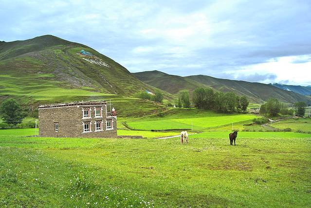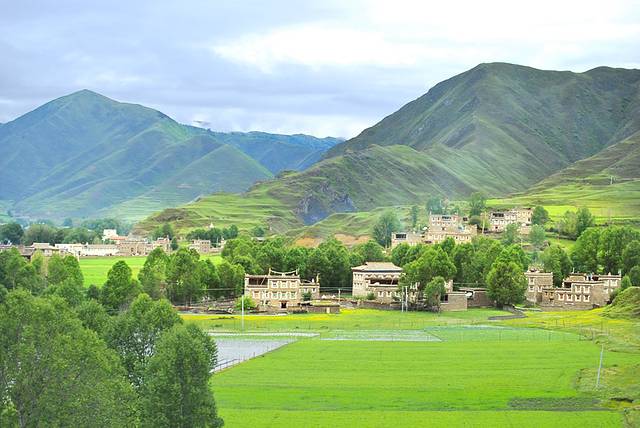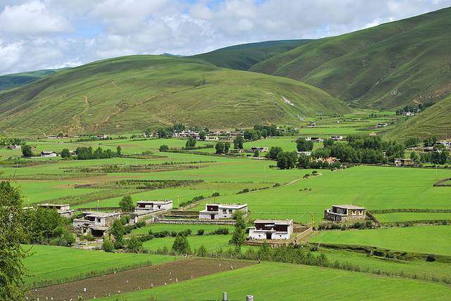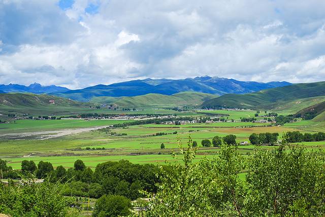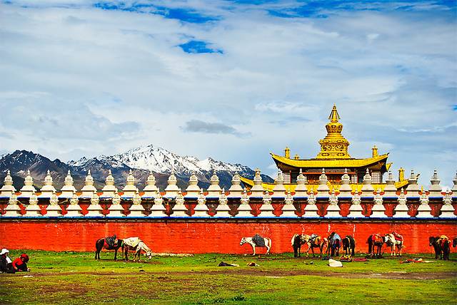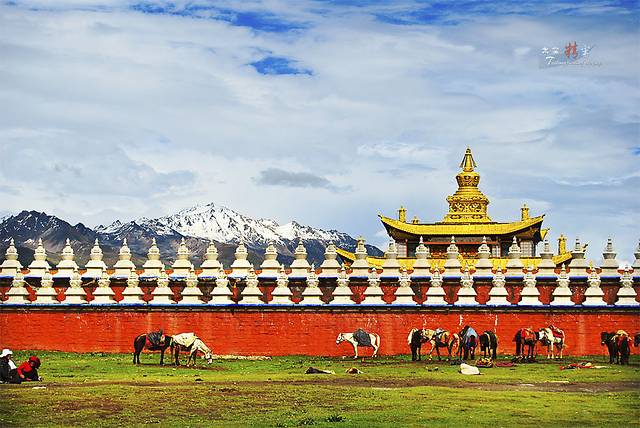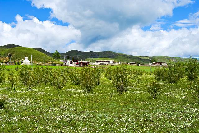 塔公草原地势和缓,水草丰茂,藏房寺庙,构成了浓郁的藏乡风情。