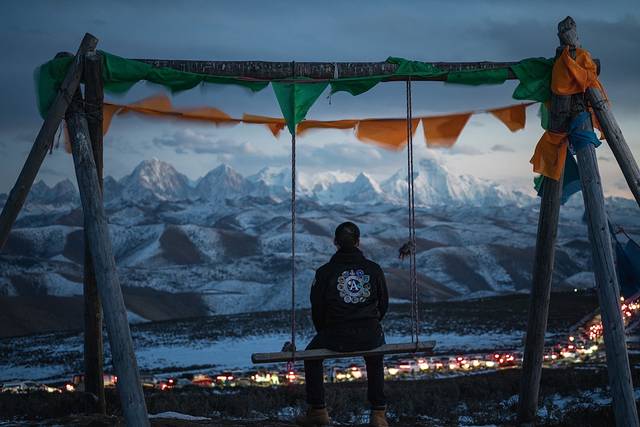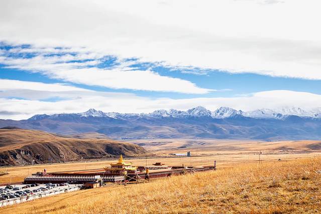 鱼子西是一个新晋的网红打卡地,位于折多山下来进入营关前的一个村庄,318路边会有指示牌提示,导航曲莫贡便可,经过一段银杏路跟几个村庄后沿着盘山路经过寺庙到达山顶就是,普通轿车也可以上去,鱼子西这一个360度无死角的雪山机位,有星空民宿,有网红秋千。