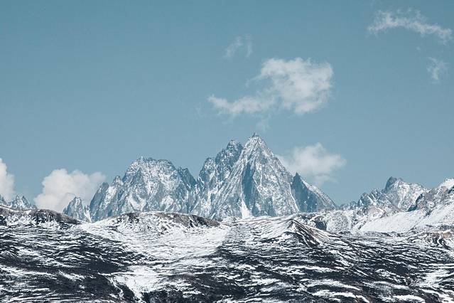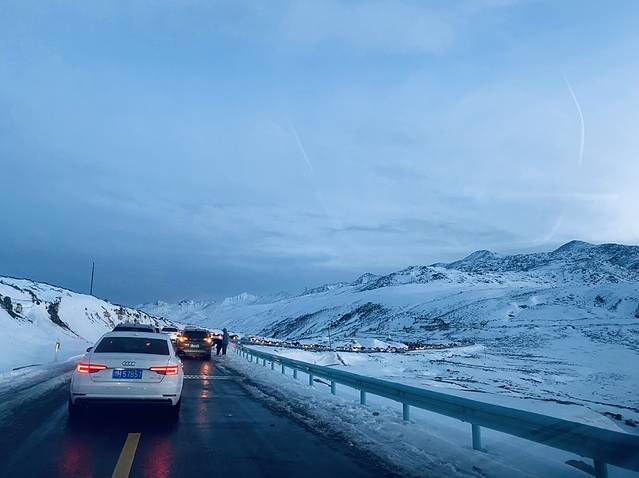 木格措继续往前,中谷村有一片野温泉,住宿条件一般,不是热衷于泡温泉没必要待,下了折多山还有泡温泉的民宿。中谷村继续走就是比较平缓的山道,首先会到达一个名为红海子的高山湖泊,此时湖面基本冻住,可以驻足感受下溜冰的乐趣;而后会经过一个比较陡的弯道,不是夜晚雪水结冰都没问题,可以很容易上去,最好的就是在上山前问过路人员道路情况,不好走就走318主路从折多山正面上去。翻过垭口首先来到雅拉垭口,这里可以看到左右两边的雅拉雪山以及贡嘎山系。