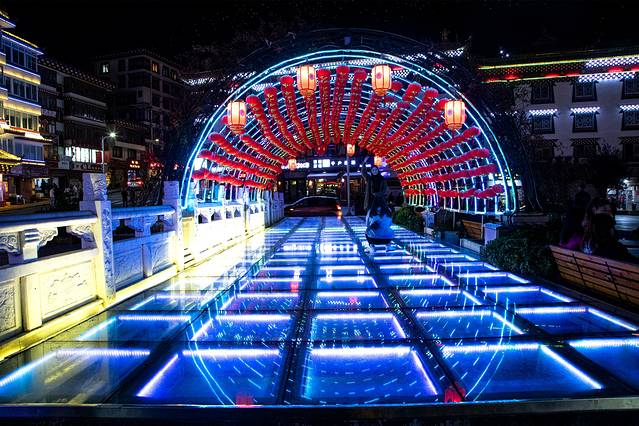 康定是318线上的明珠,夜晚溜溜城迎来他最美丽的时刻,走在康定河感受不一样的藏区夜景,到广场看一场不一样的锅庄广场舞。