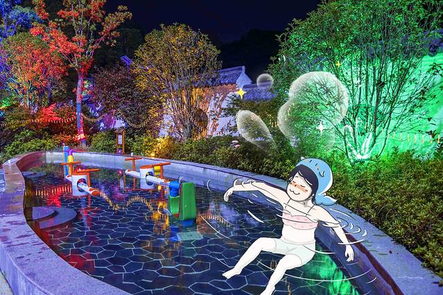 温泉池上,放置了好多充气漂浮的模具🎠 ,特别可爱!平日里的水枪带上了没有?孩子们之间的语言,用一场水枪大战开启吧!💦 💦 💦