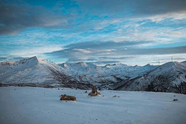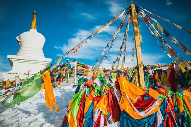 自驾G318前往新都桥,折多山是必经之地。海拔4298米的折多山也被誉为“康巴第一关”。沿途可以看到藏民修的白塔、挂的经幡,当冬日里刺骨的寒风扬起时,白塔庄重,舞动的经幡格外绚烂,与四周的雪山,晴空也相得益彰,每每此时,总会觉得:是风动、云动,也是心动。