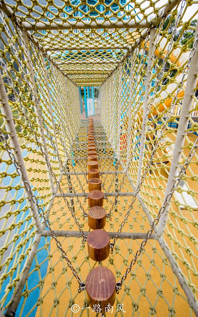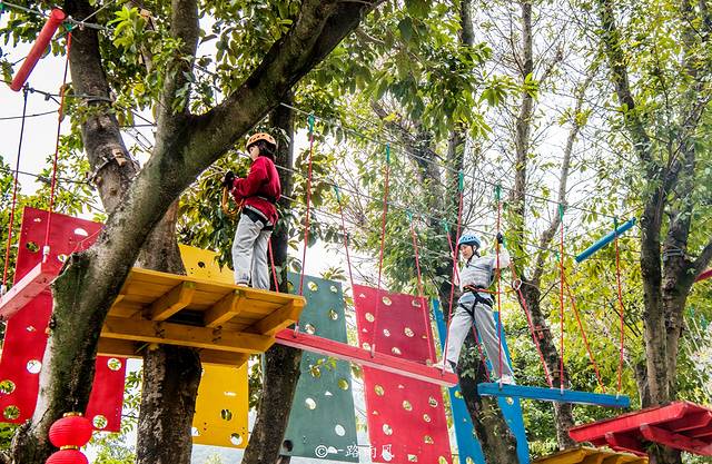 度假区里的丛林穿越项目分成人线和儿童线,参与者需要通过悬空吊桥、网道等障碍方可到达终点,在此过程中需要因应实际情况做出爬、走、滑、蹲等动作,非常考验耐心、专注力和平衡力,趣味感十足,一群人一起玩更加有趣。
