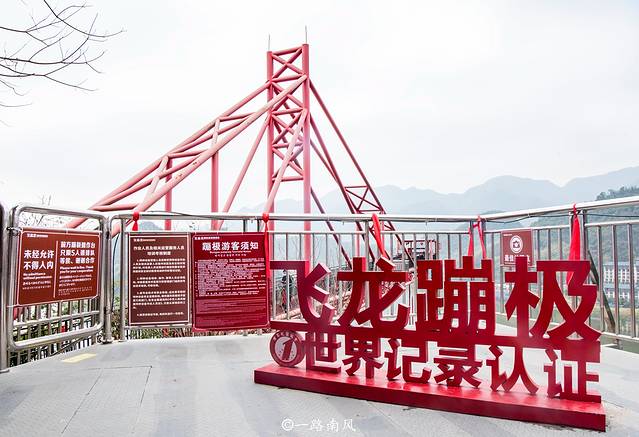飞龙蹦极位于天鹅湖畔的狮子山顶,悬空高度达到68米,是世界纪录协会认证的“世界最高悬空湖景蹦极”。