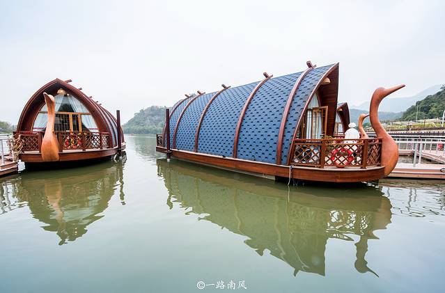 游湖的时候就发现湖边“漂浮”着一只只巨大的“天鹅”,后来才发现都是家庭套房。住在船屋里,晚上枕着轻波入眠,门外是无边美景,蓦然间仿佛身在神话传说里的蓬莱仙岛。