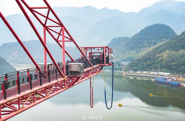 做好一切安全措施并听取工作人员的指导后,心中默念“一、二、三”,然后一跃,自然而然地发出一声长长的“哇”,稳定下来之后反而没有了恐惧,此时看看周边的湖光山色,不禁感叹“真美”。