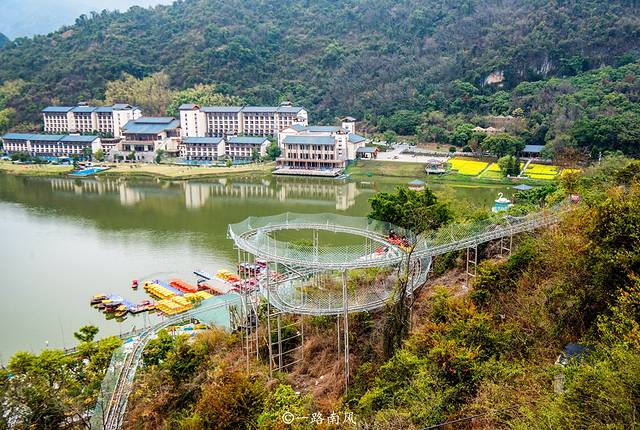 天鹅湖飞索是广东首个穿越千亩湖泊飞索,全长520米,落差60米,体验的时候感觉自己就像一个飞人从山的这头飞到湖的那一头,由于速度适中,沿途还可以静下心来欣赏旖旎风景,惬意!