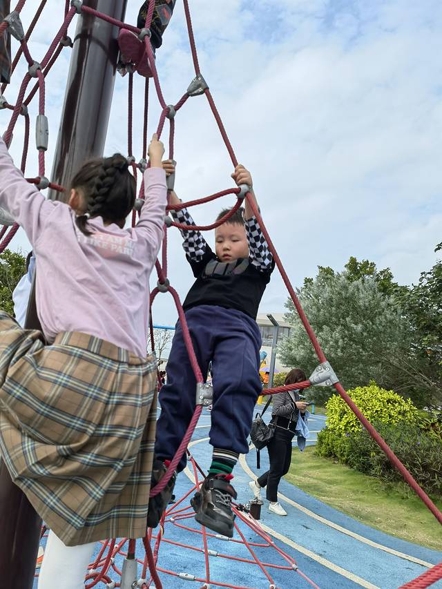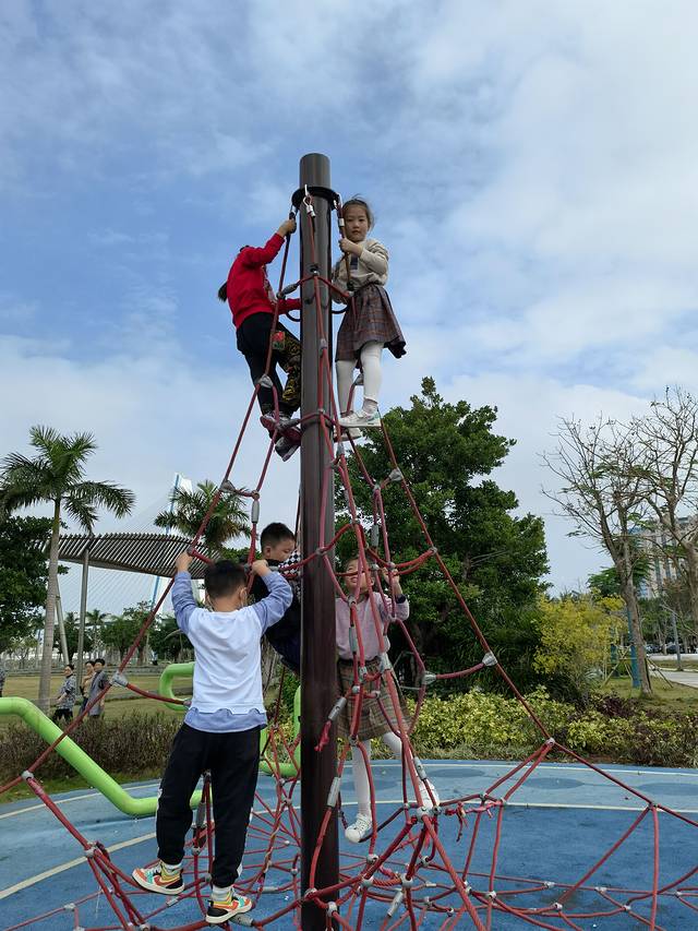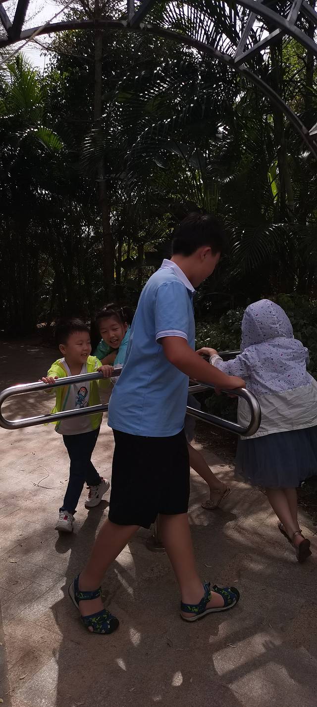 退房后,带孩子们去海口云洞图书馆打卡,可惜没有提前预约到门票,不能进去参观,孩子们在云洞门口的世纪公园玩的很开心,