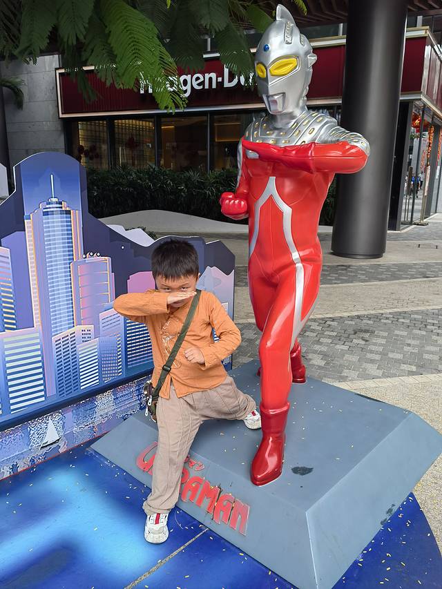 从免税店2区到1区,沿路都是奥特曼,嘉宝每个都要合影,手机都拍的没电了