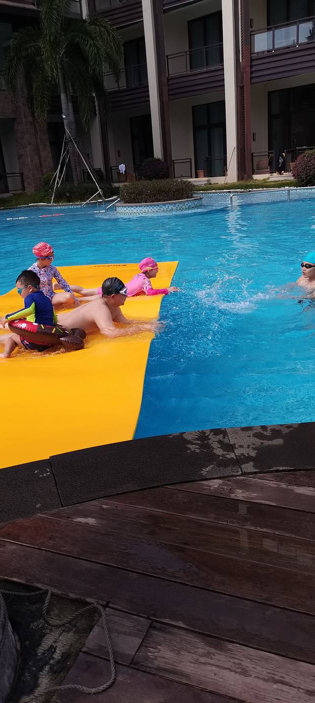 玩的太开心了,全身都是沙,荣逸酒店离海边还有点距离,我们不愿折腾,直接带娃去旁边酒店游戏池玩。两个酒店一个老板,酒店是通的哈