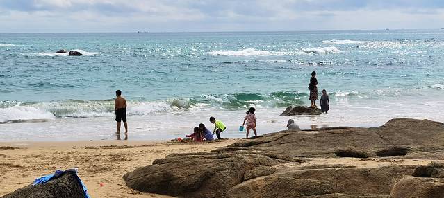第二天一早,当然是直奔海边了了,昨晚太晚吃完海鲜回来,小朋友在房间玩,就没有去海边,一大早我们就去海边了,小朋友只要在一起,啥都好玩