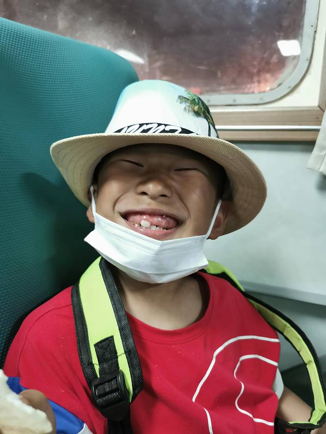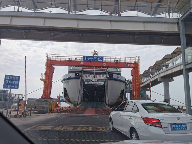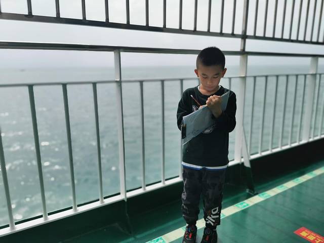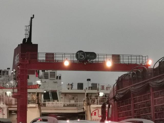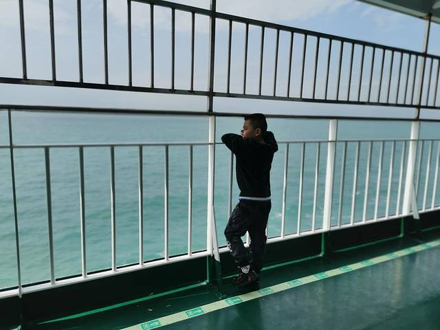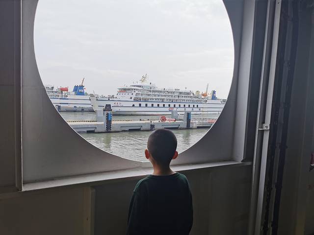 到达安检的地方,随车人员需要下车,自行上船。司机开车排队上船。因为我独自领着孩子,所以孩子随车上船。