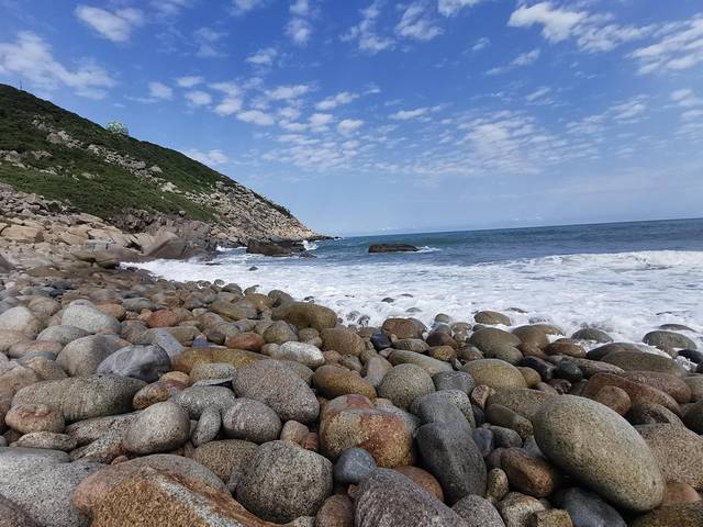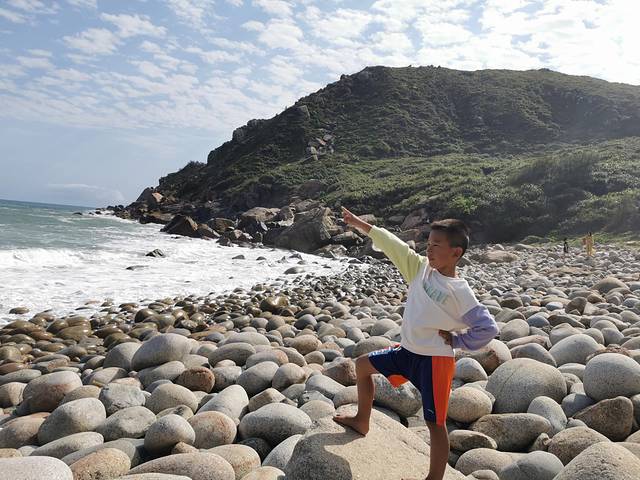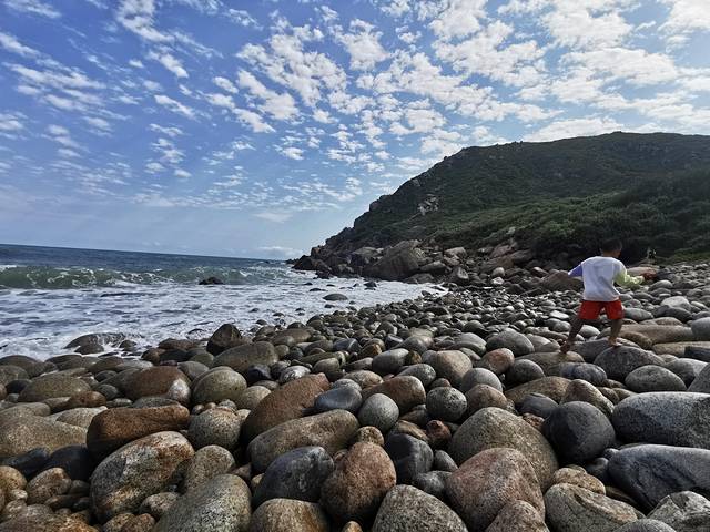 下午两点四十左右到达大花角,这里停车费10元,是当地人收的。停车后需要走一段路到达,都是鹅卵石,但是都好大一个。浪很急,不适合到海边走,会湿身。捡了2块形状满意的大石头回去,幸好是开车来的。