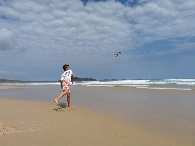 海边风筝飞起来,风大,容易飞,但是不容易持久。