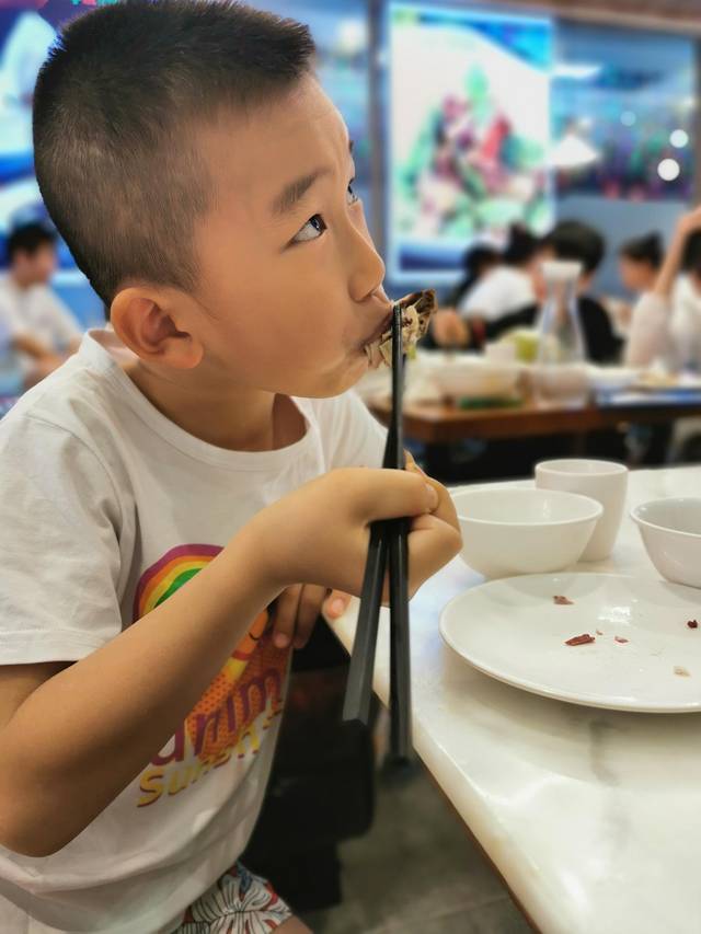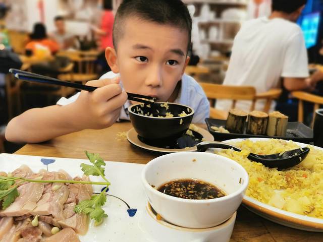 入住后,出来吃午饭,可恩念念的文昌鸡吃上了。