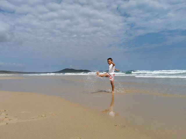 看到附近有规定游泳的地方,虽然没带泳衣,还是下去跳一会浪。