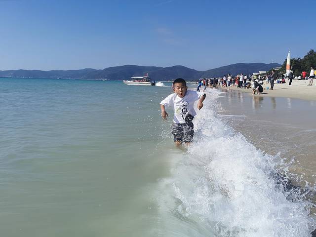 会场出来,坐船到玉带滩。玉带滩里有很多拉客的,让你去骑沙滩车。玉带滩的沙质最粗,光脚有种磨脚的感觉。不允许下水游泳。