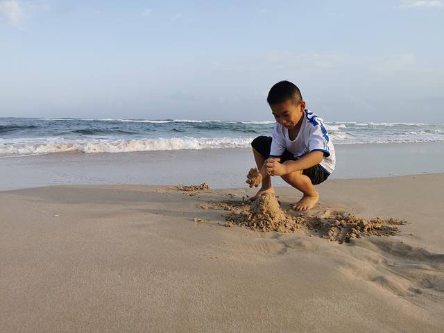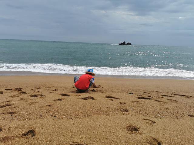万宁瞭望台附近的海,海水含盐量高,浪白,水急,不适合游泳,部分海滩浅水区域长,部分区域有暗流。沙质适中,是海南去过的几个地方里唯一一个把沙子攥成团扔出去,仍然是一团沙子的地方。