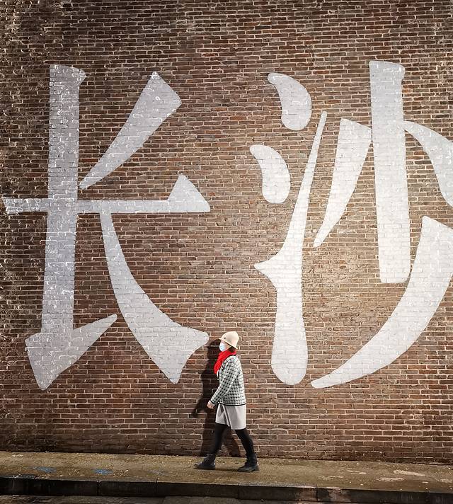最主要的打卡地点是这面“长沙”字样的红墙